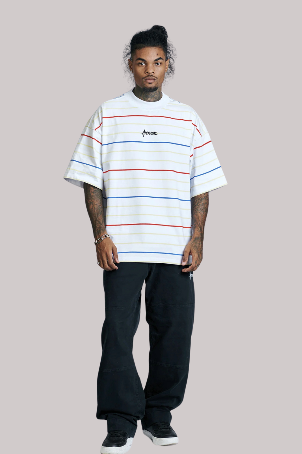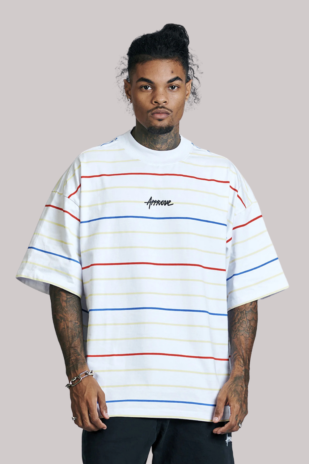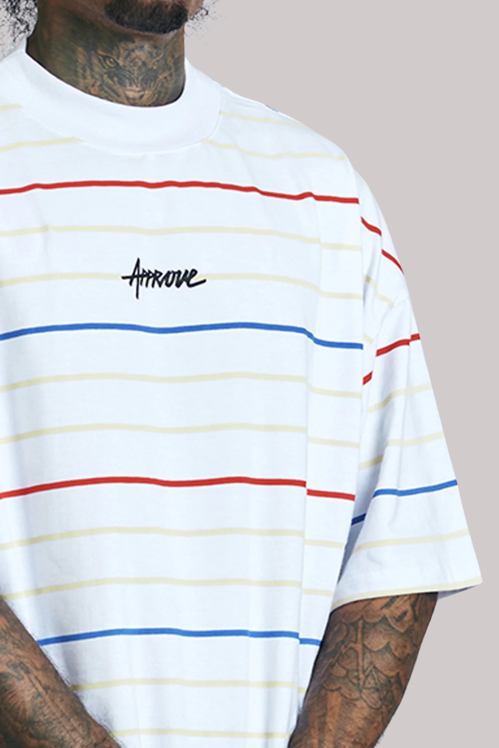 Arte exclusiva APPROVE aplicada na parte frontal e traseira da peça. Listras exclusivas APPROVE