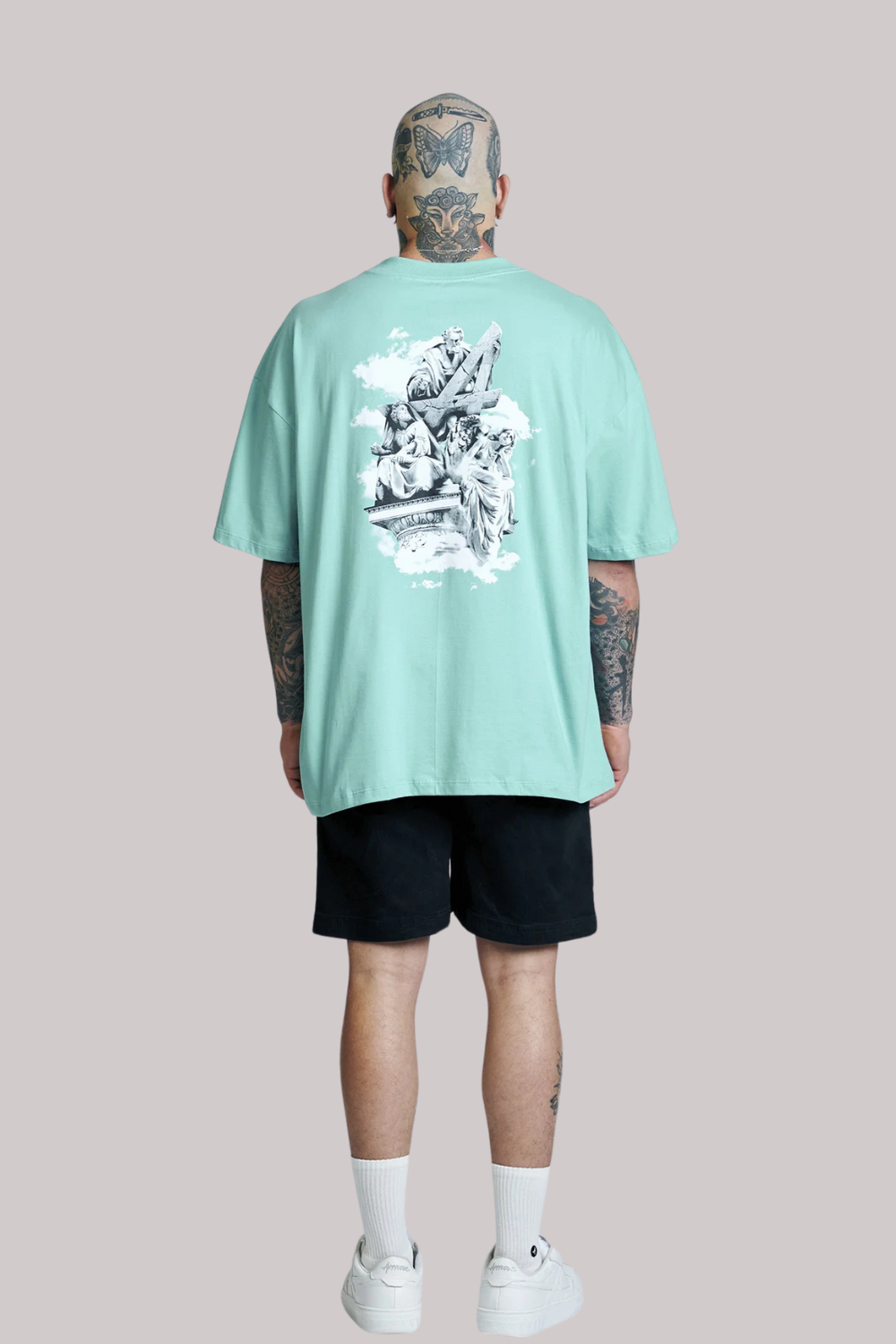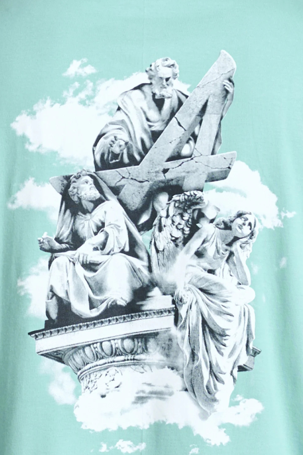 Arte exclusiva APPROVE aplicada na parte frontal e traseira da peça. A estampa funde o streetwear contemporâneo com a arte grega clássica, representando estátuas como símbolos de beleza e perfeição em um contexto moderno, onde coexistem com o logo da marca em efeito de pedra, simbolizando a durabilidade e identidade sólida da Approve.