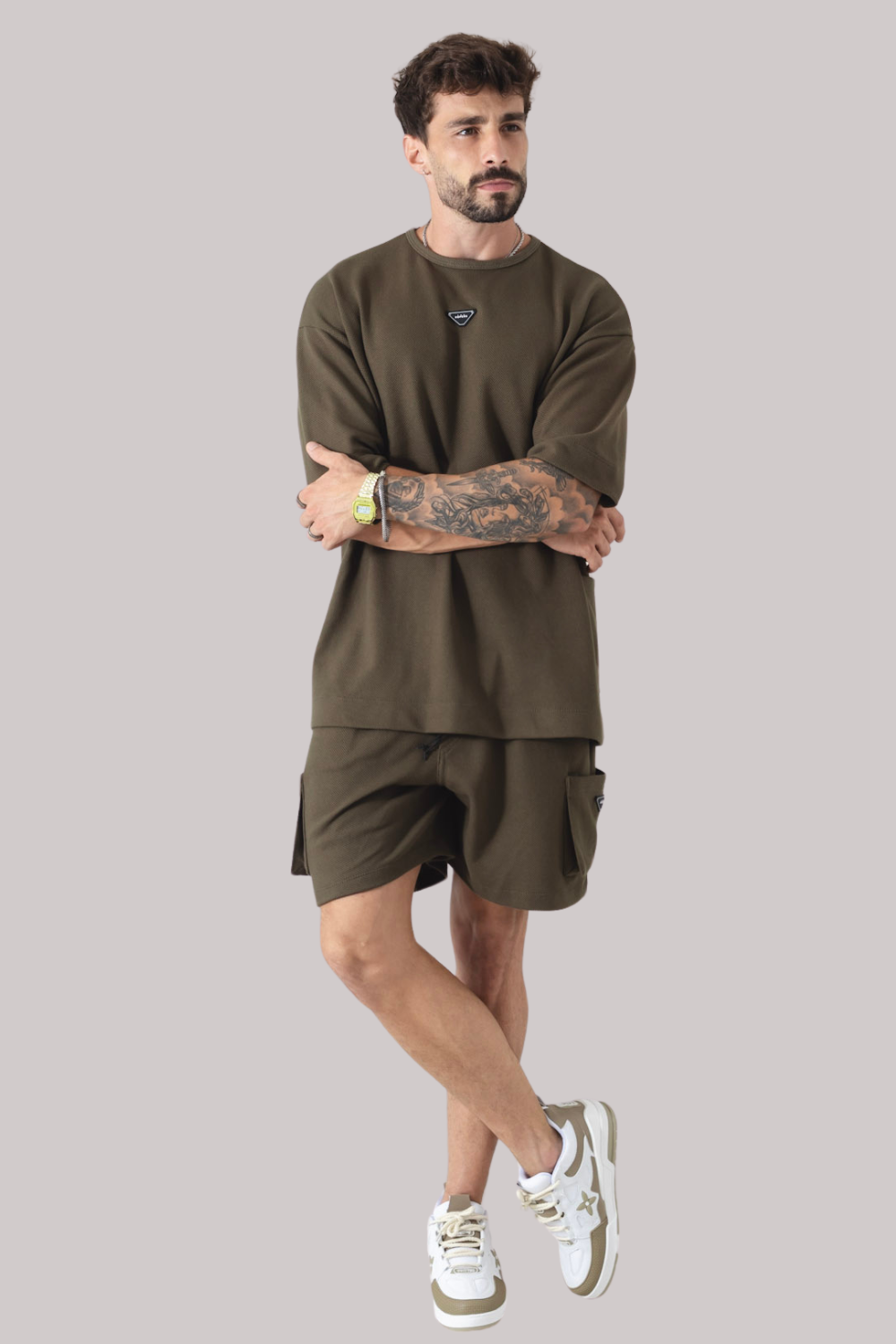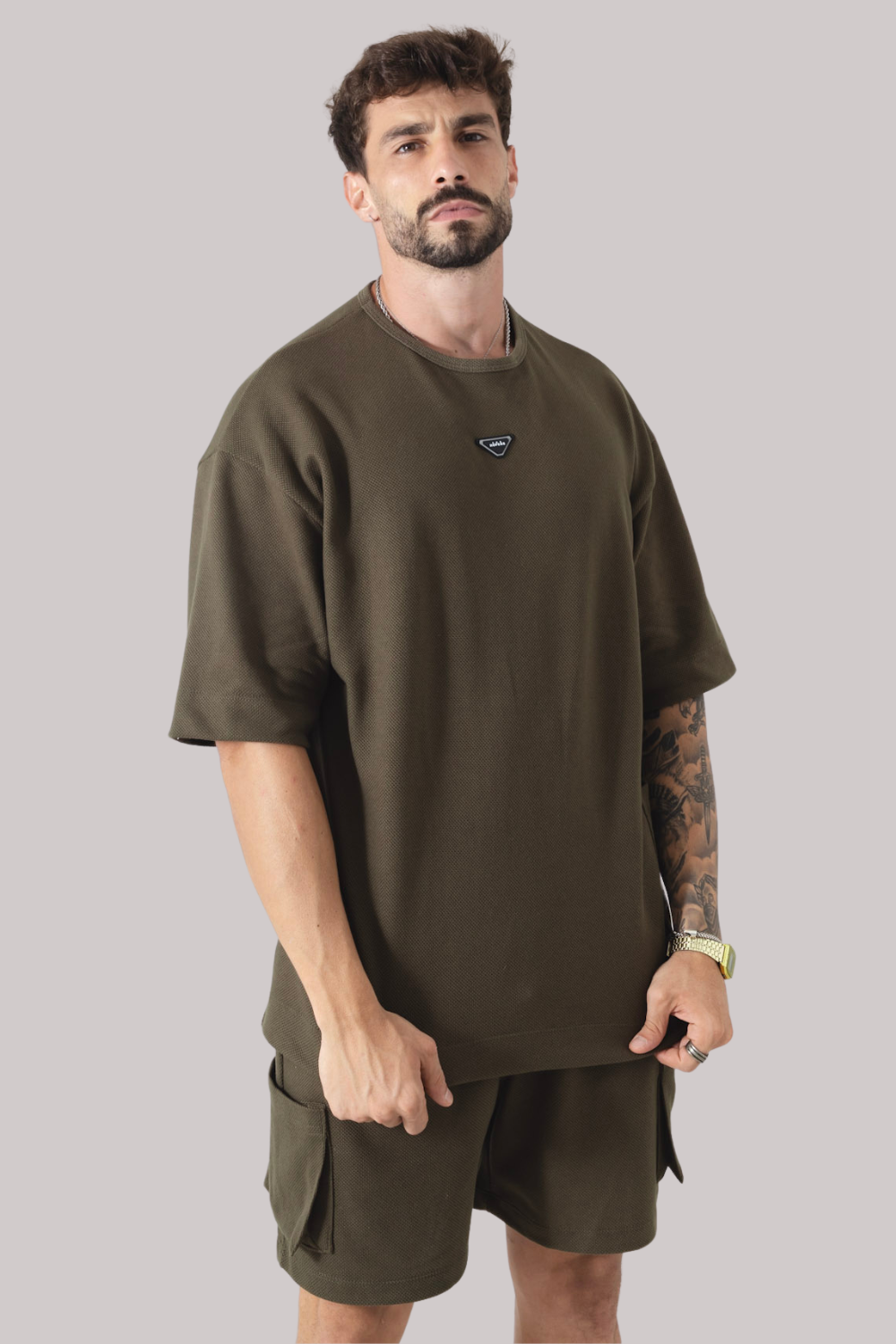 Características: Camiseta oversized, gola redonda, camiseta com aplique em borracha no formato triangular com a escrita "HOPERS" em cinza, com um bolso lateral, e tecido com um ótimo caimento.