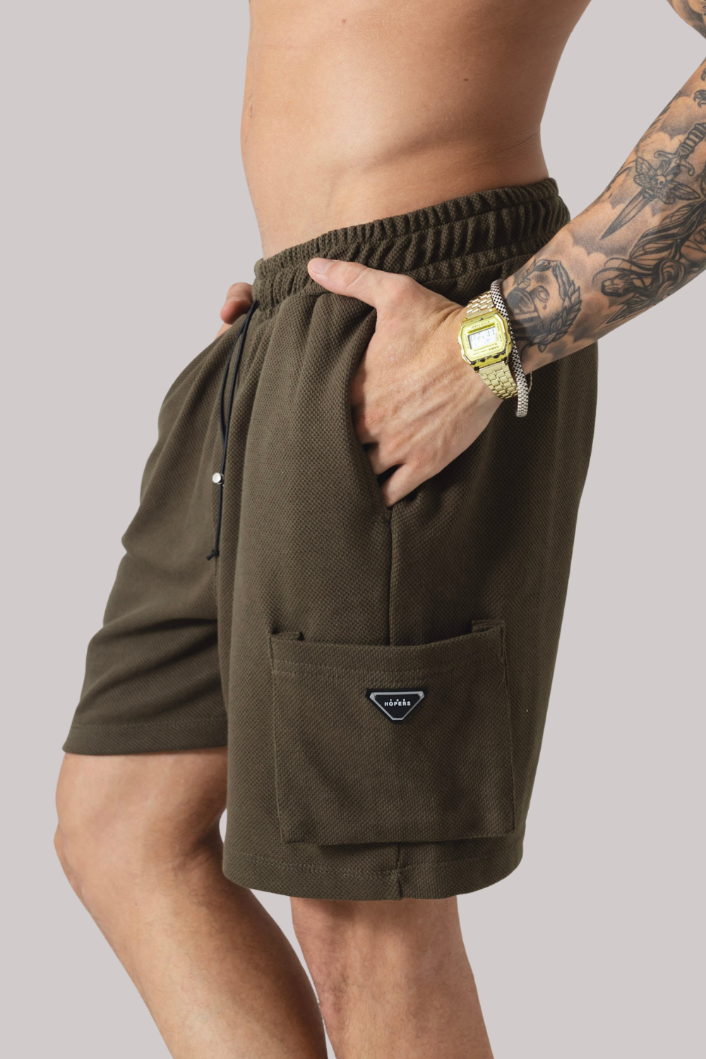 Bermuda, com aplique em borracha triangular com escrita "HOPERS" em cinza, no bolso lateral direito, shorts com três bolsos, 2 laterais e 1 traseiro, com elastico para ajuste na cintura, muito confortavel.