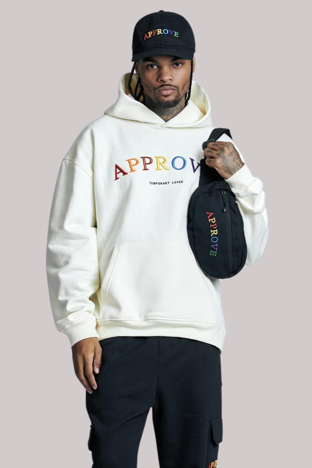 Moletom bold com capuz, bolso canguru e acabamento em ribana. Bordado frontal