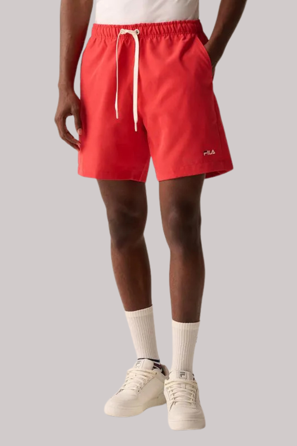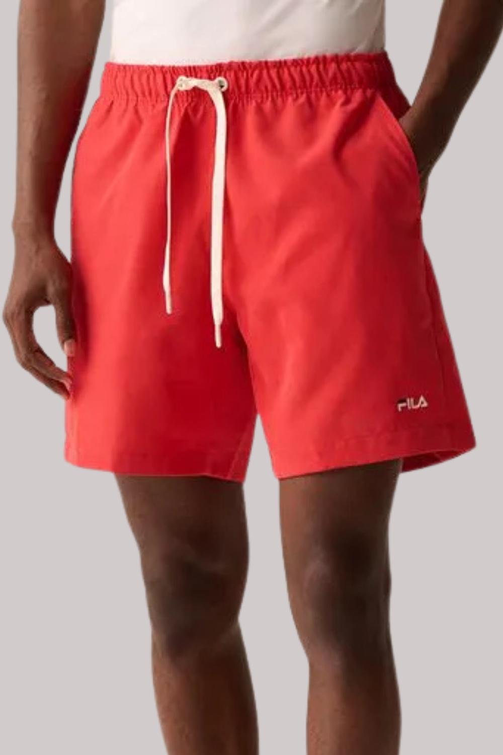 Sobre o produtoShorts masculino confeccionado em tecido plano de poliéster com poliamida. Modelagem comfort, mais solta no corpo, com cós tombado de 4,5 cm. Possui cordão de ajuste com amarração externa no cós, bolsos laterais, bolso traseiro com tape institucional aplicado horizontalmente, gancho pespontado e logo Fila Letter bicolor bordado na lateral esquerda próximo à barra. Comprimento total: 44 cm.